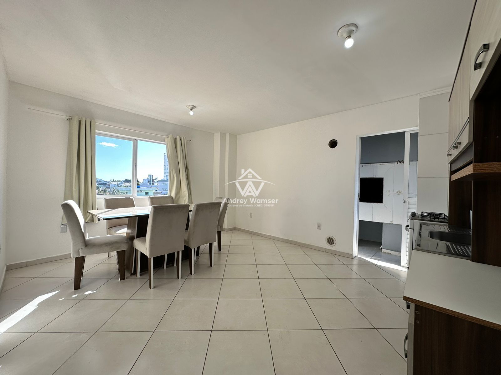 2 dormitórios (sendo 1 suíte), ambiente integrado sala de estar/jantar e cozinha, banheiro, área de serviço e sacada com churrasqueira, 1 vaga de garagem.