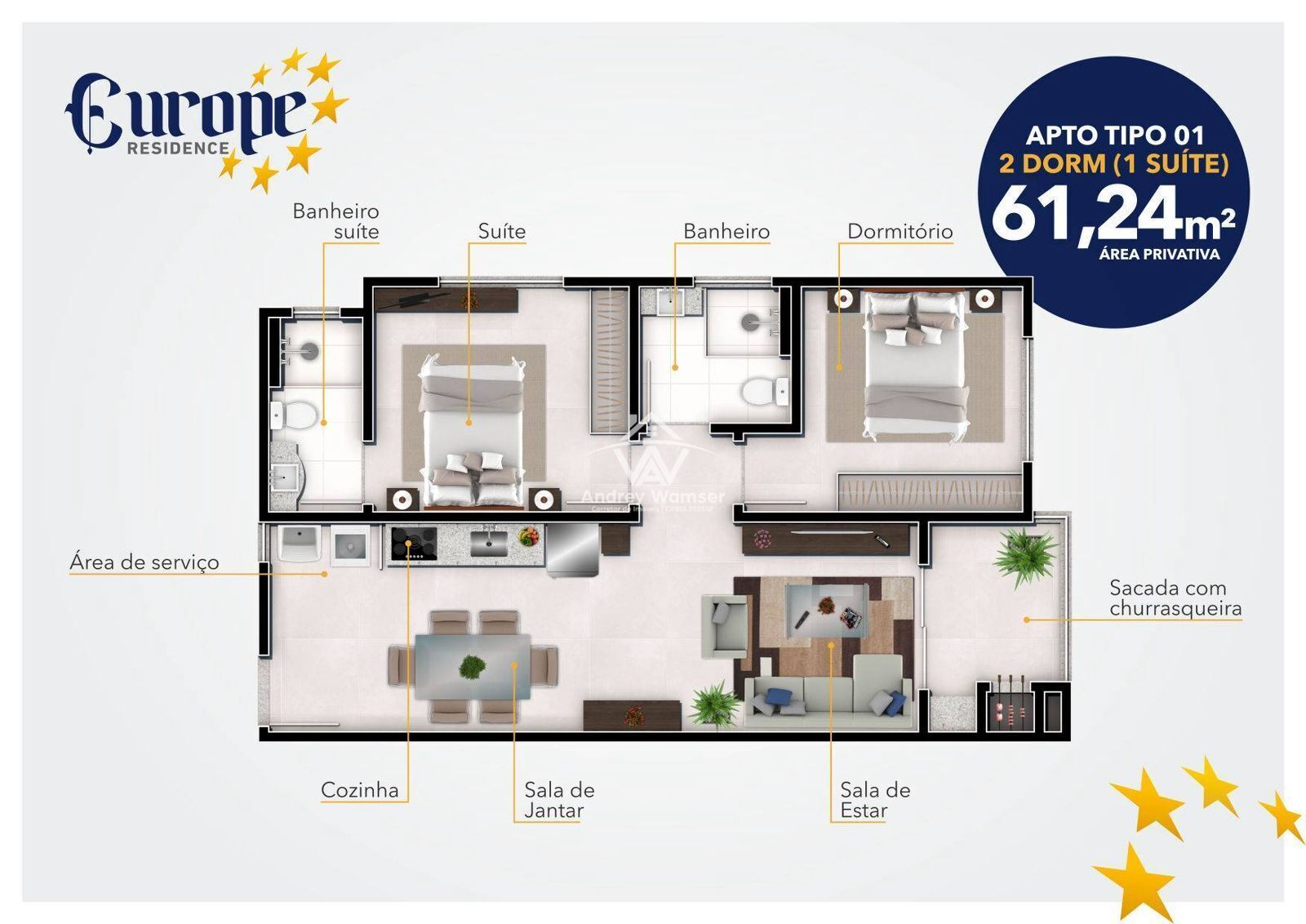 61,24m² de Área privativa