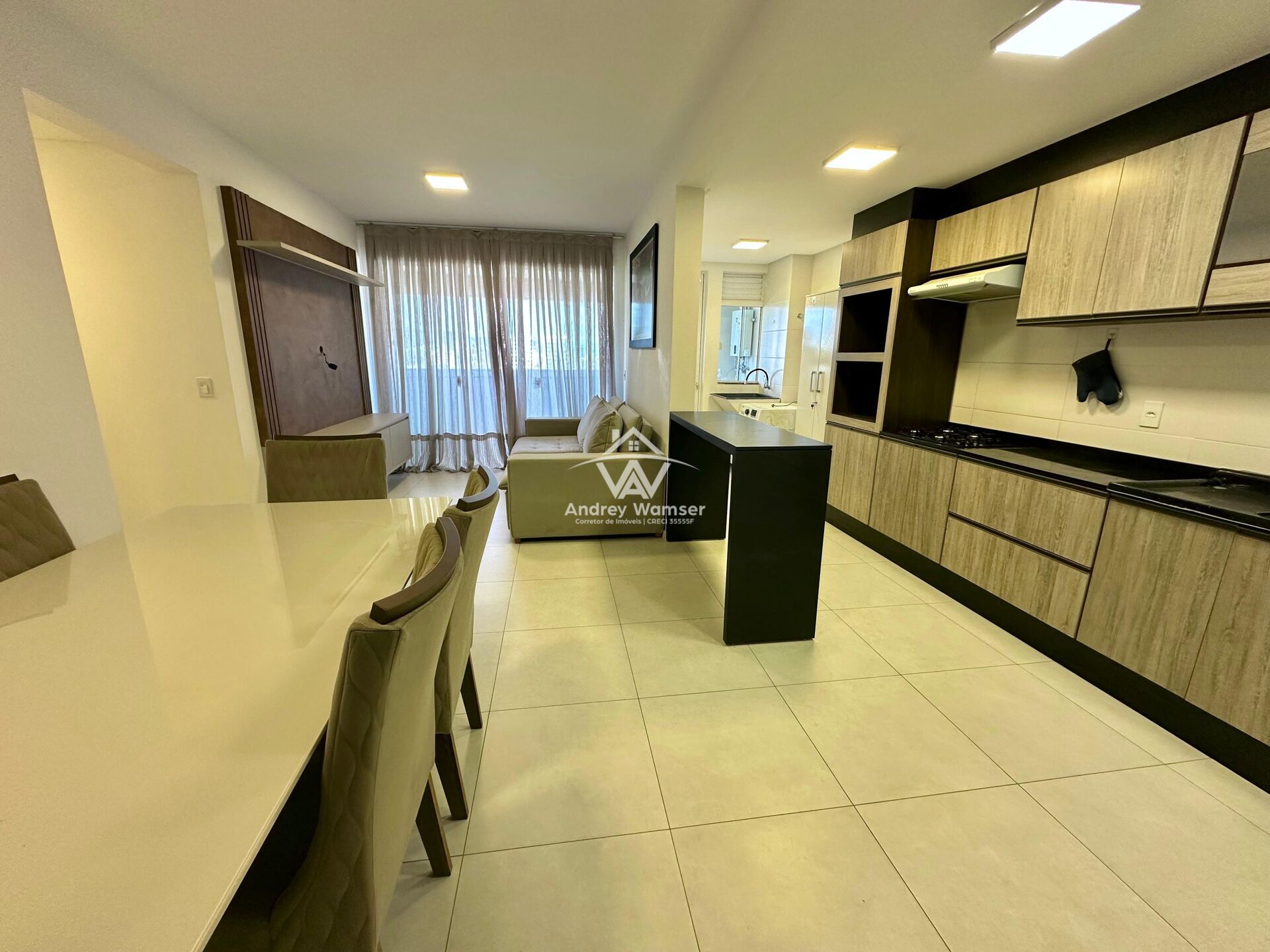 3 dormitórios (sendo 1 suíte), ambiente integrado sala de estar/jantar e cozinha, lavanderia, banheiro, sacada com churrasqueira e 2 vagas de garagem cobertas.