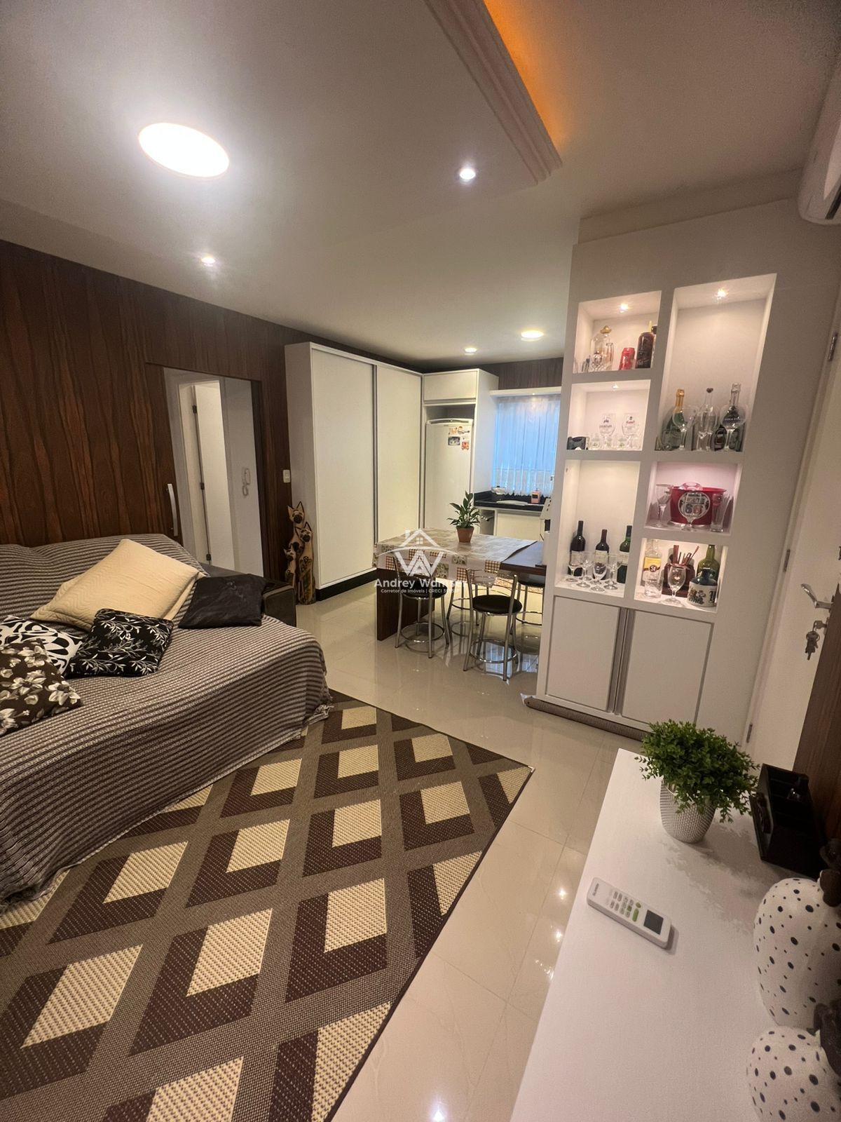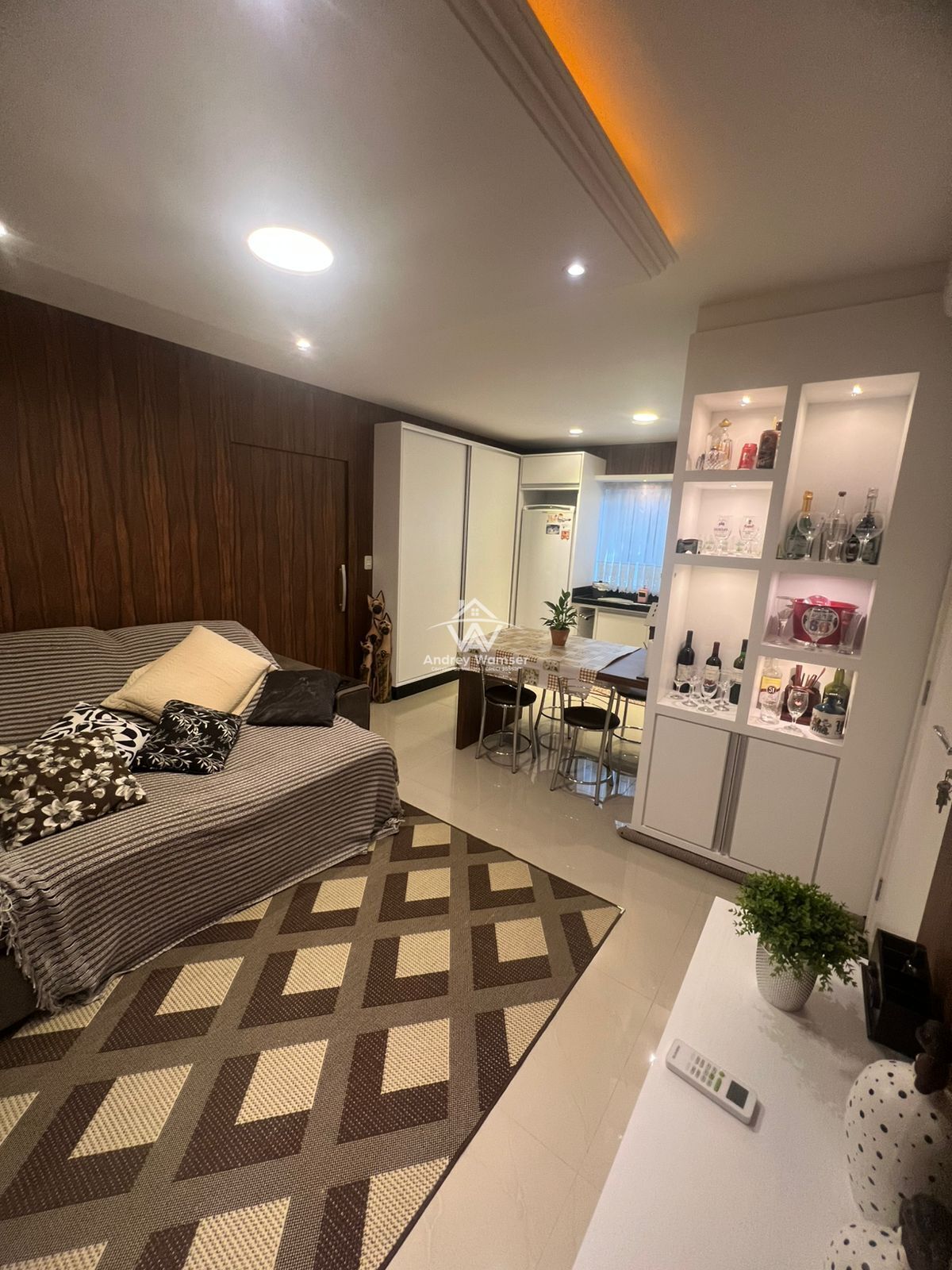 Ambientes com rebaixo em gesso e iluminação indireta.