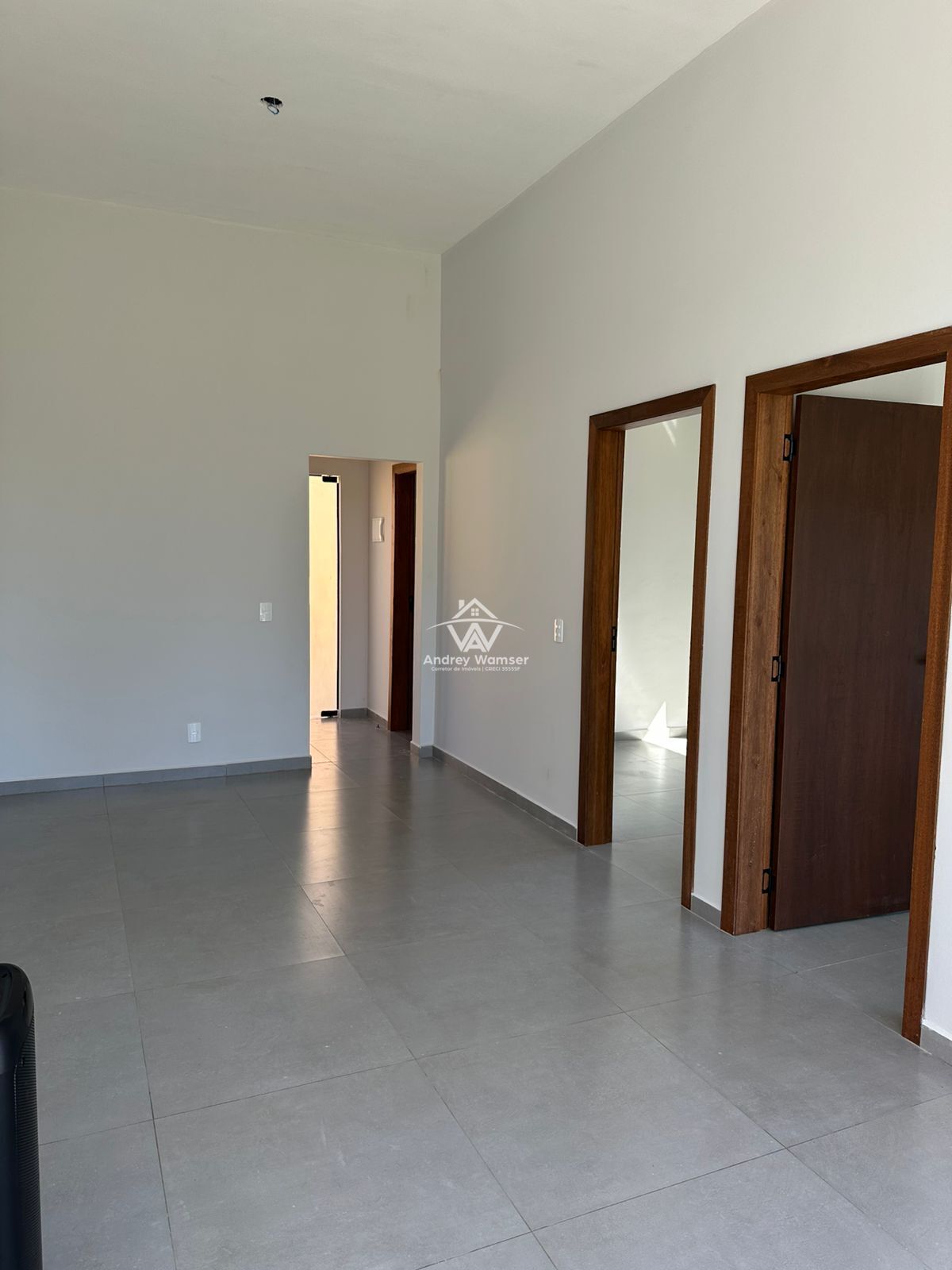 Casa com 2 dormitórios, ambiente integrando sala de estar/jantar e cozinha, banheiro e área de serviço.