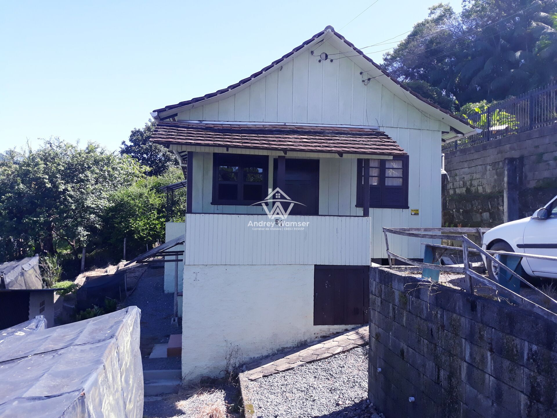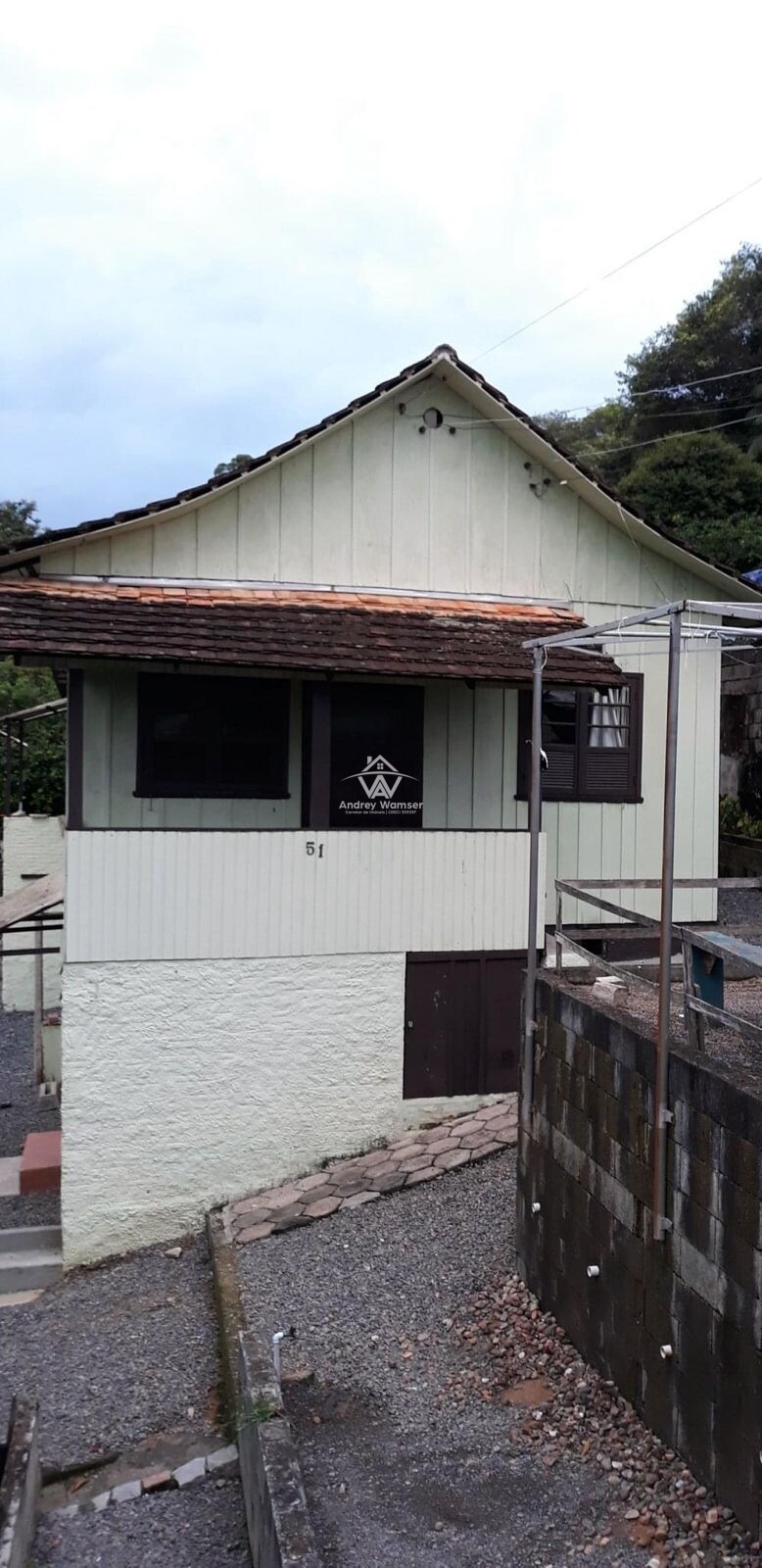 1 casa de Madeira com 120 m², 3 Quartos, 1 sala, 1 cozinha com mobília, Sala de jantar, banheiro, e Lavação (Possui porão, área inferior contendo + 1 Quarto, Cozinha e banheiro)